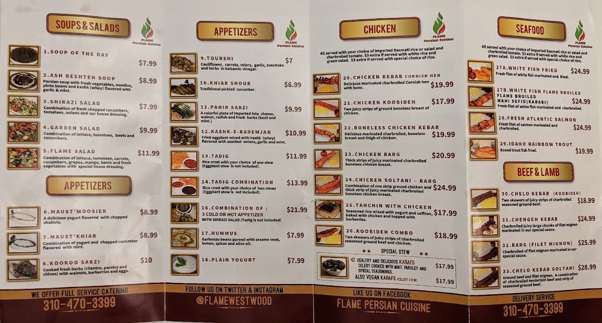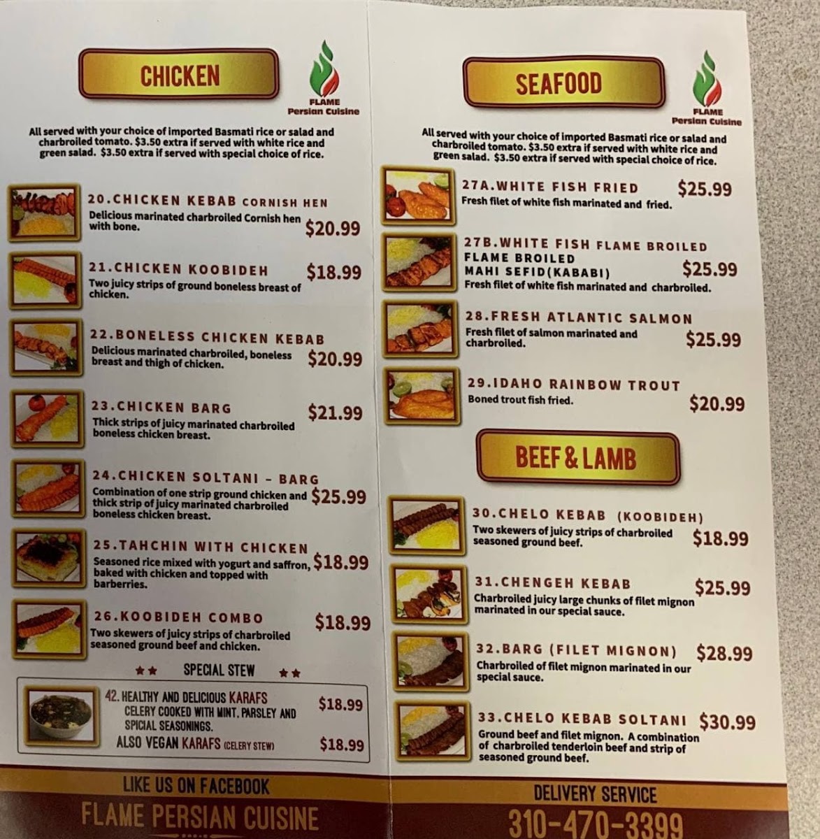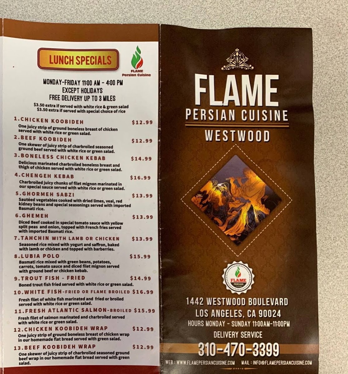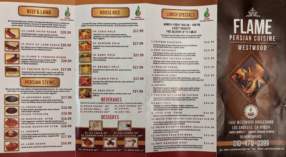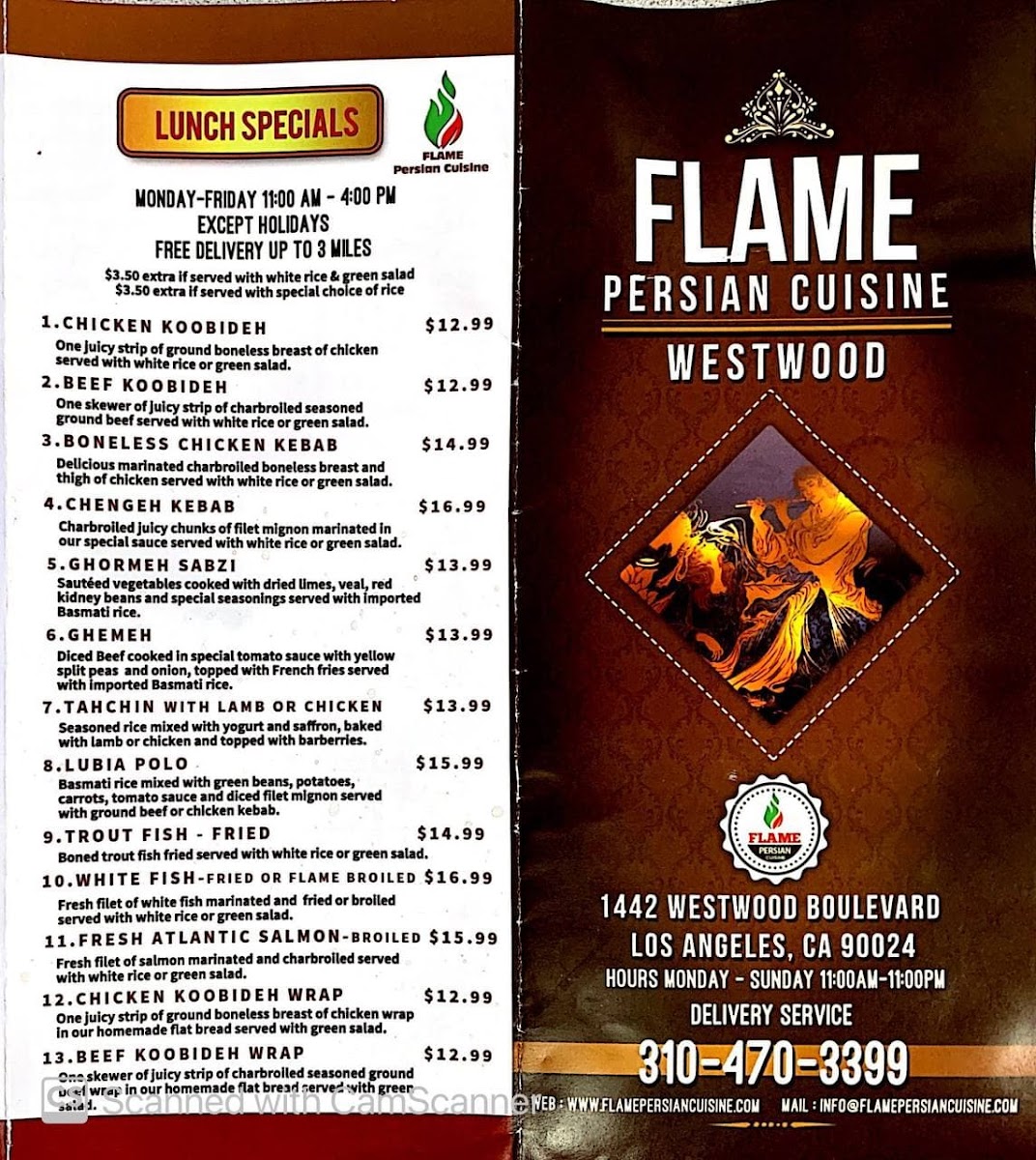 If you’re searching for an unforgettable dining experience that captures the warmth and essence of Persian cuisine, look no further than Flame Persian Cuisine. Nestled in the heart of Los Angeles at 1442 Westwood Blvd, this delightful eatery invites you to indulge in a culinary journey full of rich flavors and aromatic spices.